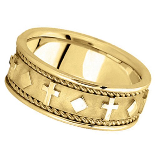 Illustrate your faith, love and commitment with this gorgeous 18k gold cross wedding ring for men.. This stunning handmade Christian wedding band features crosses circling all the way around the band.